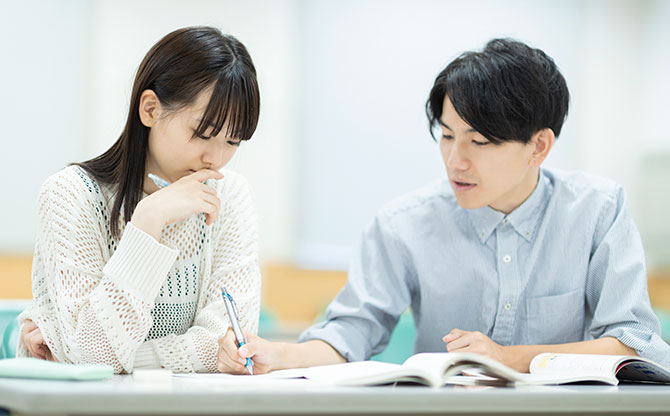 講師1人に対して生徒2人までの個別指導です。一人の生徒が自分で解いている間に、もう一人の生徒へアドバイスをし、理解と演習の時間を作っています。